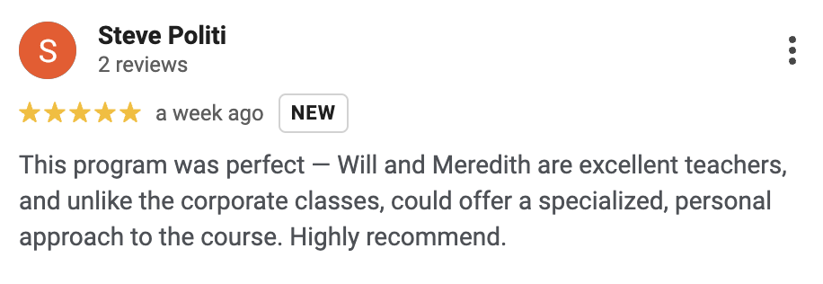 Want to save $25? Skip the credit card and Squarespace fees - enroll in any course by completing this form and sending the $600 payment via Zelle to 619-306-2597, with your student’s name in the description.